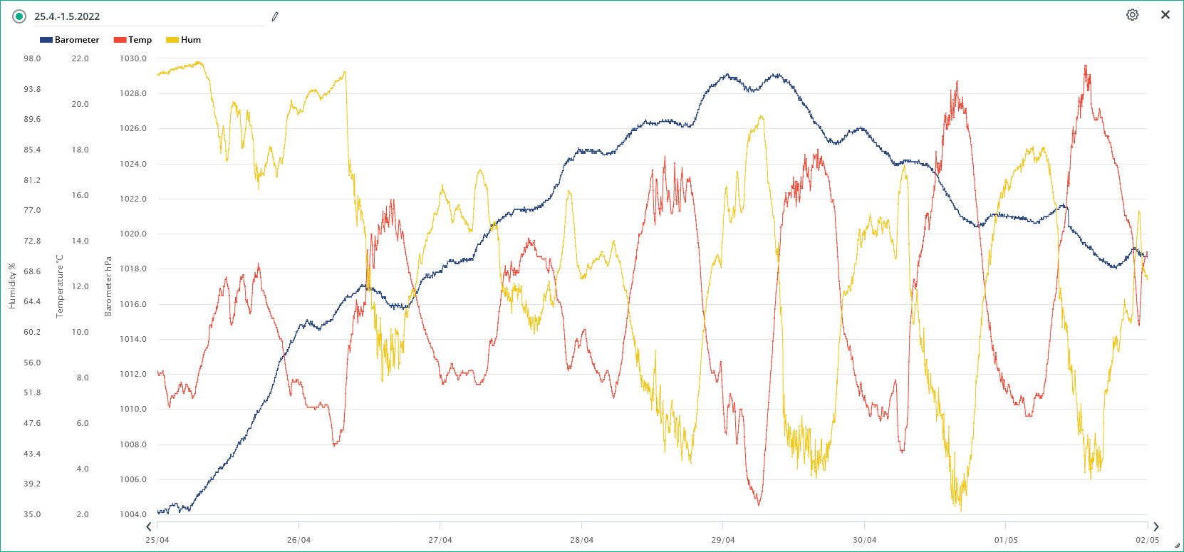 Minimální/maximální tlak 4.5.: 1015,5 hPa / 1017,9 hPa
