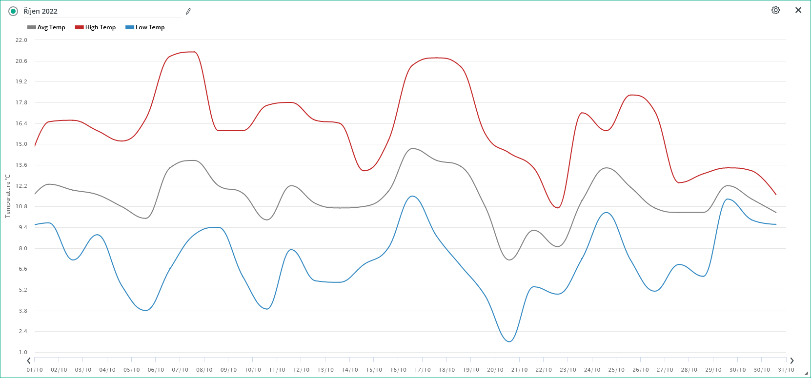 - nejchladnějším dnem byl 20.10. s průměrnou denní teplotou + 4,90°C