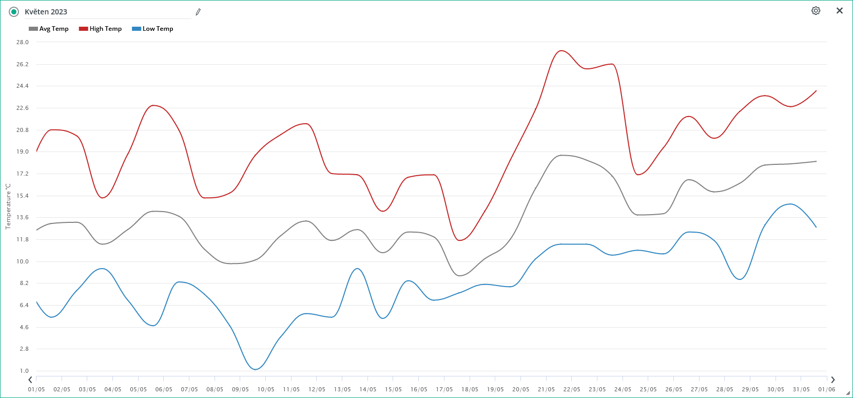 - nejteplejším dnem byl 22.5. s průměrnou denní teplotou + 18,93°C
