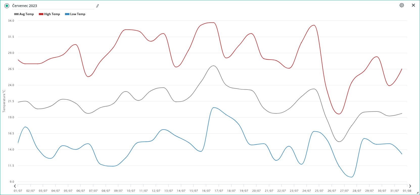 Maximální teplota: 33,7 °C (16.; 16:05 selč)