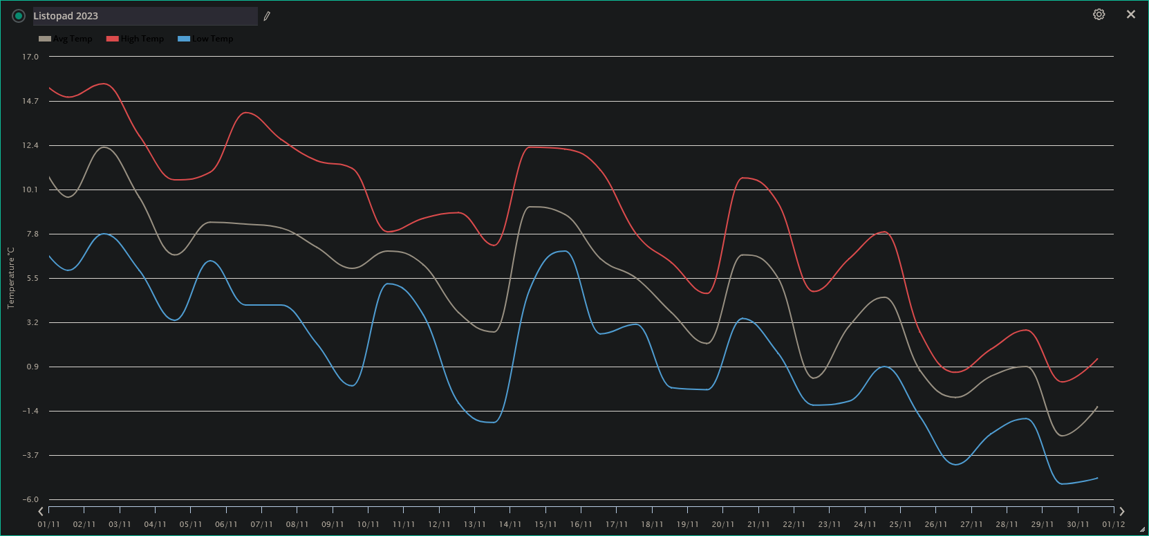 - absolutně nejnižší teplota byla dosažena dne 29.11. - 11,1°C ve 2:02 SEČ