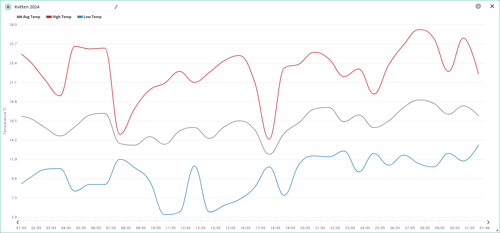 - nejchladnějším dnem byl 9.5. s průměrnou denní teplotou + 11,46°C
