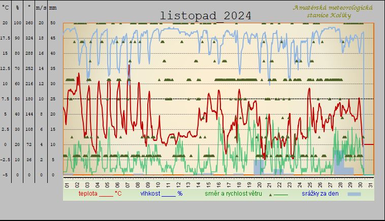 - absolutně nejnižší teplota byla dosažena dne 23.11. - 5,2°C v 7:20 SEČ